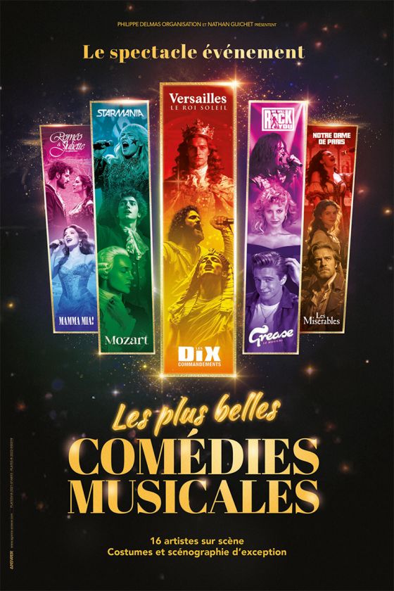 Présenté par Alexandre Sorin Productions (PLATESV-D-2024-005638/ 005637) Avant de fêter leurs cinq ans avec une tournée événement en 2027, LES COMÉDIES MUSICALES reviennent pour 10 dates exceptionnelles en juin 2026 pour fêter la musique avec vous ! Au programme, vos tubes favoris des comédies musicales françaises et internationales, avec sur scène : Cécilia CARA, Damien SARGUE, Ginie LINE, Merwan RIM, Priscilla BETTI, Gwendal MARIMOUTOU et Alexis LOIZON pour un concert live de plus de 2H. Venez fêter la musique avec nous en 2026 !