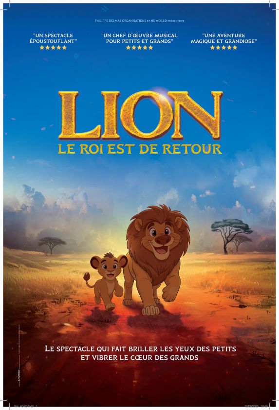 LION, LE ROI EST DE RETOUR Le spectacle mythique Plongez au cœur de la savane pour 1h20 de magie pure ! Portée par 16 artistes talentueux qui enchantent la scène par leur chant, leur danse et leur jeu, cette comédie musicale familiale transporte petits et grands dans un univers visuel éblouissant composé de costumes somptueux, éclatants de couleurs et de détails minutieux, qui donnent vie aux personnages légendaires de cette épopée inoubliable. Le spectacle est rythmé par de grands succès musicaux mondialement connus, des chansons que tout le monde aime entendre… et chanter avec les artistes. Une expérience immersive, joyeuse et fédératrice, qui touche aussi bien les enfants que leurs parents. Au cœur de la savane, règne un lion majestueux, souverain respecté et protecteur de l’équilibre du royaume animal. Sous son regard bienveillant grandit son jeune fils, héritier désigné du trône, destiné un jour à devenir roi. Mais le chemin vers le pouvoir est semé d’épreuves… et le jeune lion est encore loin d’imaginer les défis qui l’attendent. Tapi dans l’ombre, un personnage malveillant, rongé par l’ambition, convoite le trône depuis toujours. Prêt à tout pour empêcher la succession légitime, il orchestre une terrible machination qui va bouleverser le destin du royaume. Chassé de son monde, le jeune lion entame alors une quête initiatique au cœur de la jungle. Sur sa route, il rencontre des personnages hauts en couleur, drôles, étonnants et profondément attachants. Ces compagnons l’aideront à grandir, à comprendre qui il est vraiment… et à trouver la force de reconquérir son héritage. Entre émotion, humour et prouesses visuelles, LION, LE ROI EST DE RETOUR est une ode vibrante au courage, à la transmission, à l'amitié et à la découverte de soi. Un voyage au cœur d'une Afrique mythique qui promet à toute la famille un moment magique, joyeux et profondément fédérateur.